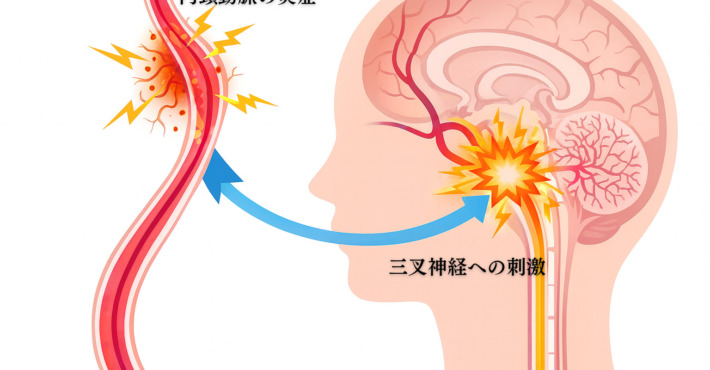 群発頭痛は一次性頭痛の一種で、三叉神経と自律神経の異常な活性化が関与すると考えられています。