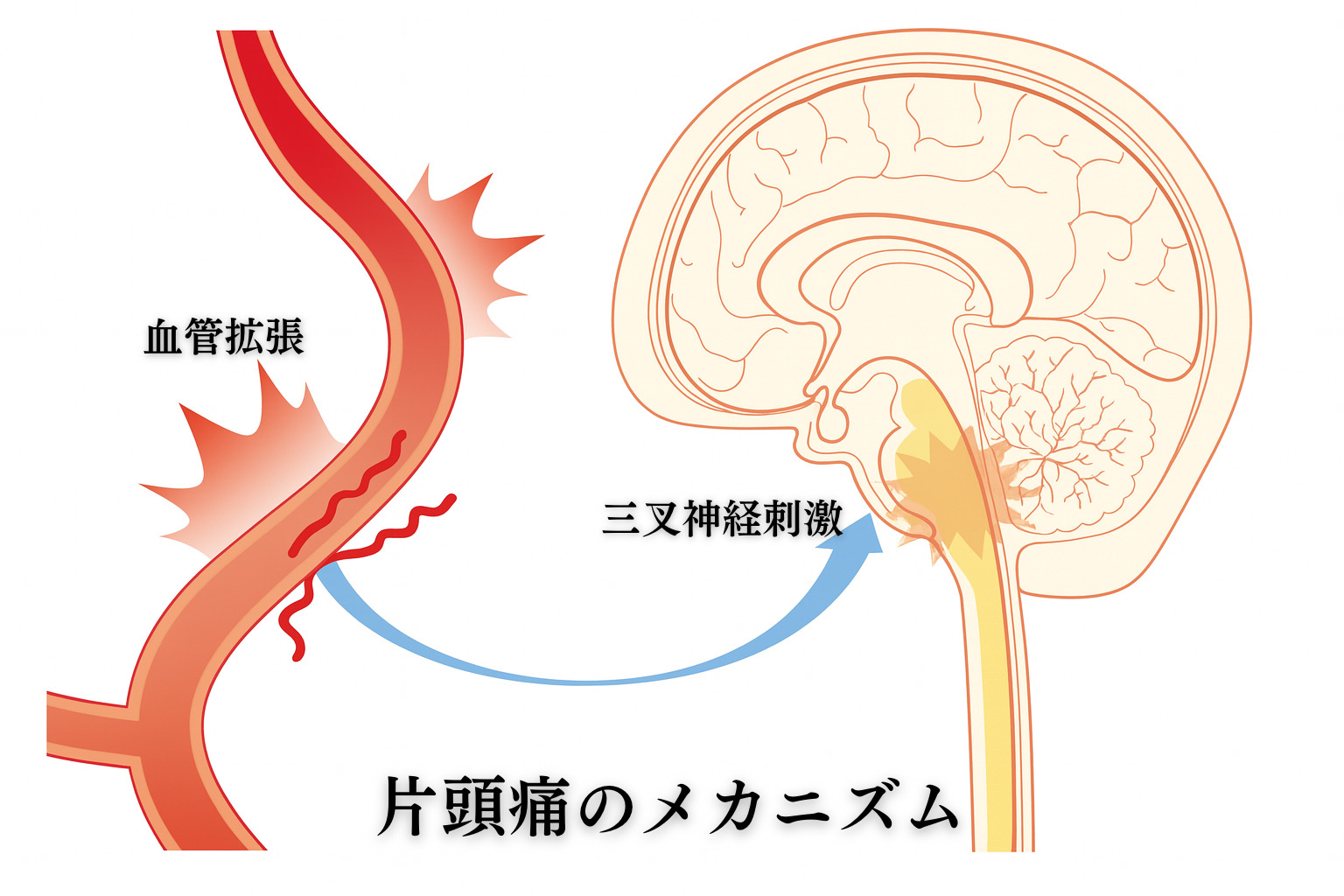 片頭痛は血管の拡張と三叉神経の活性化が関与すると考えられています。